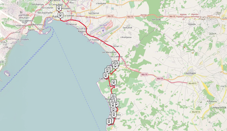 Els autobusos cobreixen rutes com Palma – Cala Millor, Palma – Algaida – Campos, Palma – Manacor, entre altres. Aquestes línies connecten les zones més concorregudes de l’illa, garantint un gran abast per a les teves campanyes publicitàries.